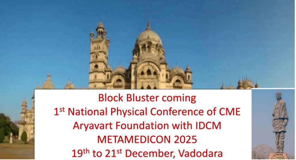 Now, looking ahead, I’m thrilled to announce the 1st National Physical Conference of CME INDIA — METAMEDICON 2025 — — a collaborative effort of CME ARYAVART FOUNDATION & IDCM. Mark your calendars: December 19 to 21, in Vadodara. It’s going to be a blockbuster!